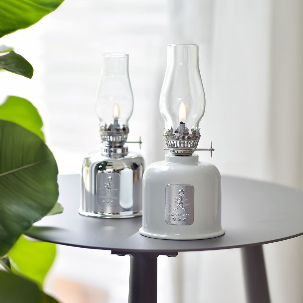 Solstickans fotogenlampa skapar både stämning och ljus där elektricitet inte räcker till eller väljs bort för en mysig atmosfär.
