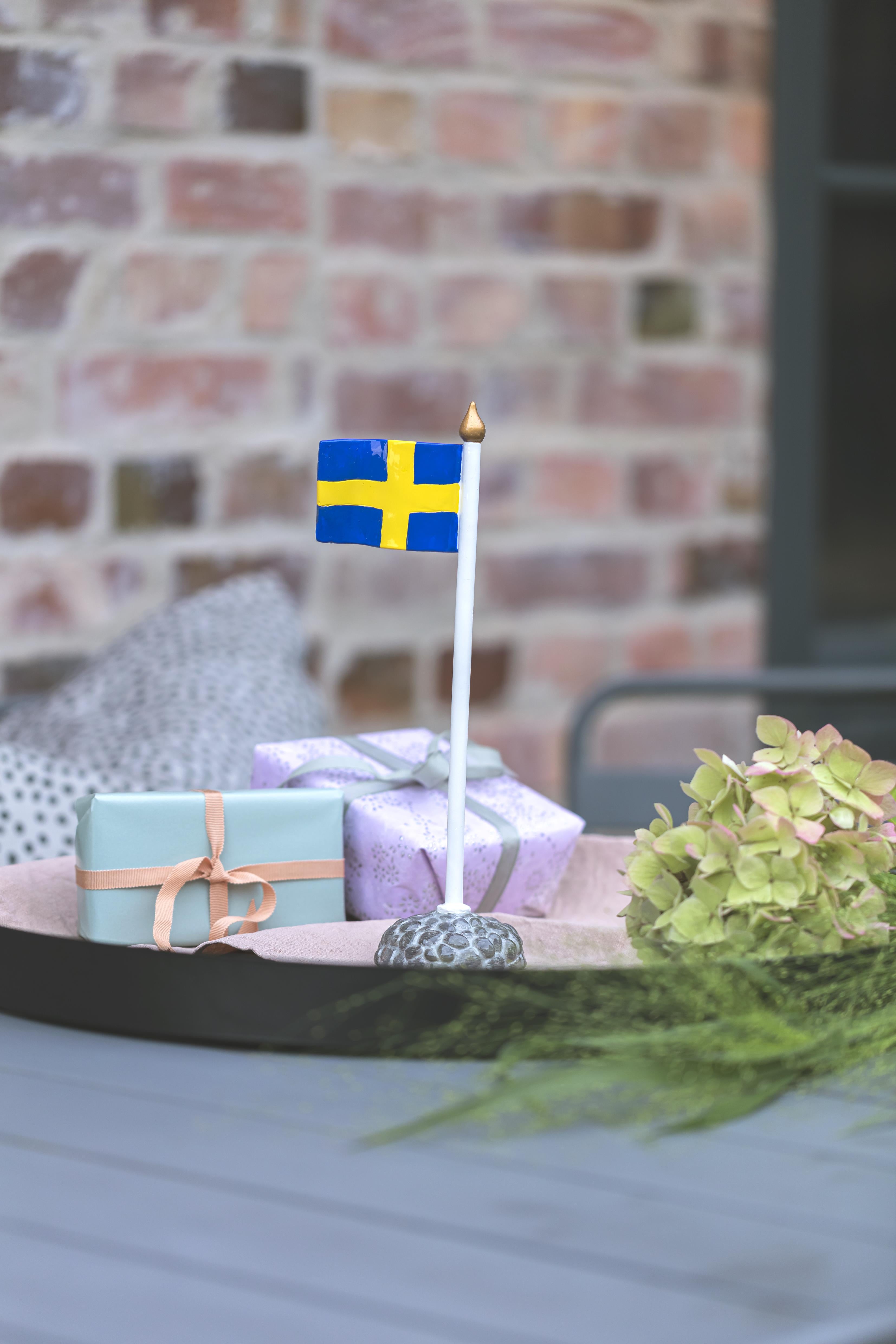 En klassisk liten bordsflagga i blågult – perfekt för högtider, födelsedagar och andra festliga tillfällen. Varje flagga är handmålad vilket gör dem alla unika.