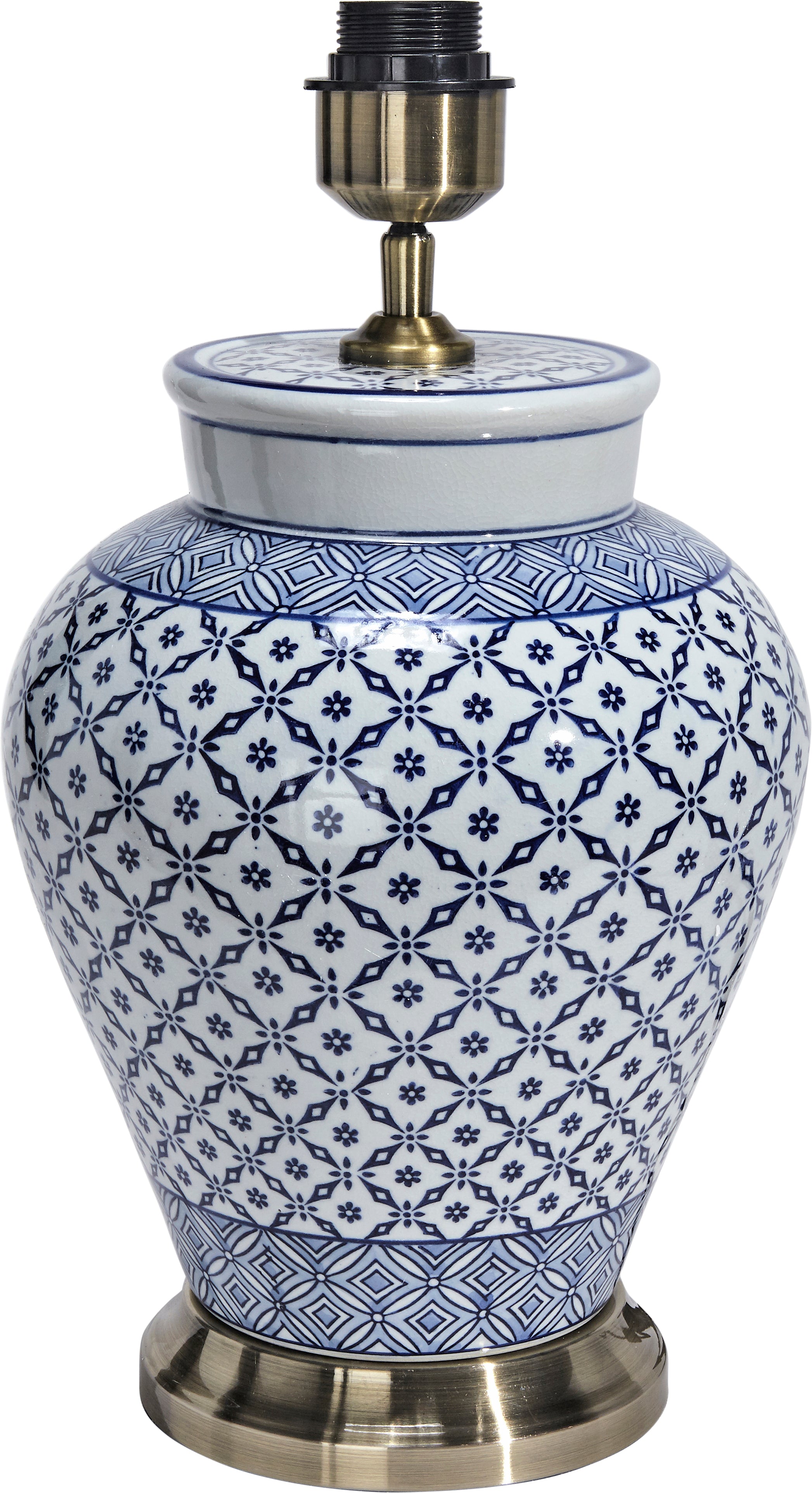 En vackert mönstrad klassisk lampfot i keramik. Passar bra ihop med lampskärmen Sofia 35cm. Lampfoten är 38 cm hög och har en E27-lampa.