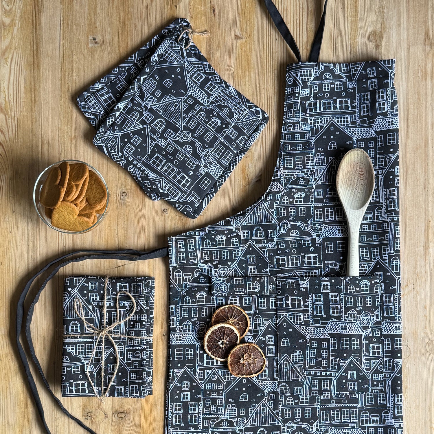 Gustav är kökshandduk i 2-pack med ett härligt svart/vitt print inspirerat av charmiga stadshus med klassiska detaljer.
