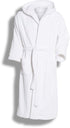 En lyxig frottérock från Kosta Linnewäferi att krypa in och mysa i, den sköna känslan förstärks av huvan. Rocken har en modern design och kommer med en brodyr, KL på fickan.