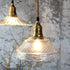 Gammeldags taklampa i mönstrat klarglas. Glaset är lite klockformat och rutmönstrat. Lampan har en lång tygsladd och mässingsdetaljer och passar utmärkt över ett mindre matbord, barbord eller i hallen.