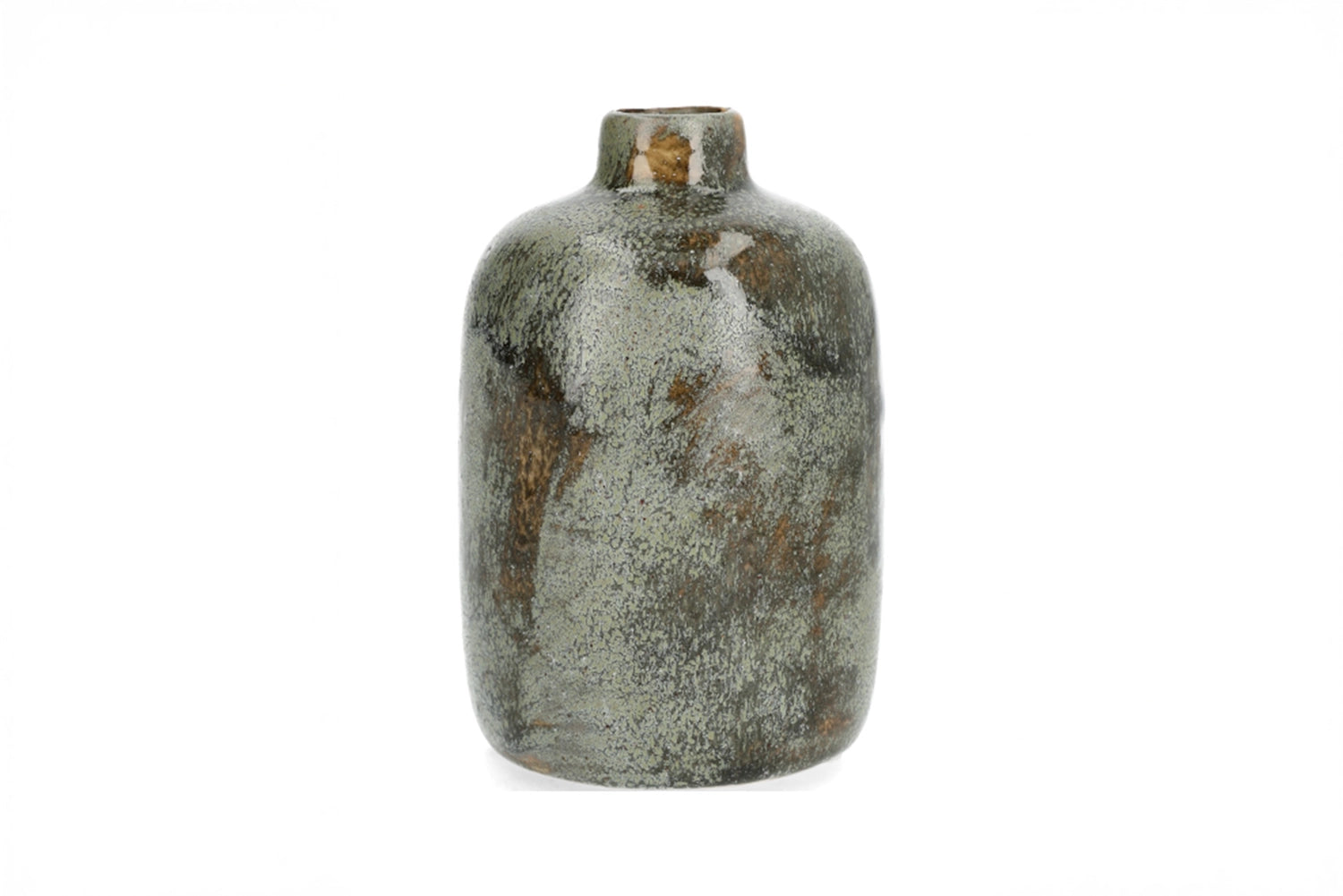 En keramikvas i djupt grön ton som finns i två olika former, avlång eller rund. Perfekt som solitär på bordet eller i fönstret.