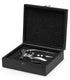 Exklusivt vinset i snyggt rostfritt stål. Vinöppnare med smart och exakt rotationsteknik avlägsnar lätt både naturliga och syntetiska korkar. Setet inkluderar även termometer, folieskärare och en dekorativ stoppare som skyddar ditt vin om du önskar spara det. Kommer i en fin trälåda och presentförpackning.